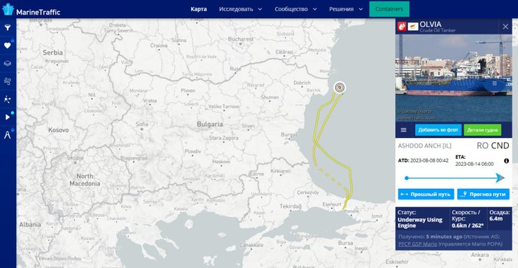 Згідно із сервісом Marinetraffic маршрут танкера справді пролягав та навіть перетинався із суховантажем "Шюкрю Окан".