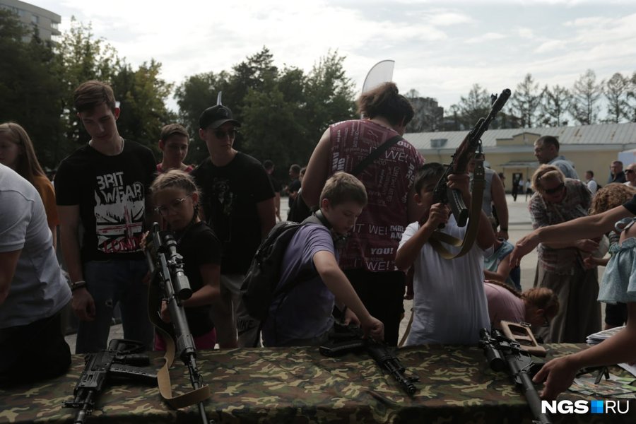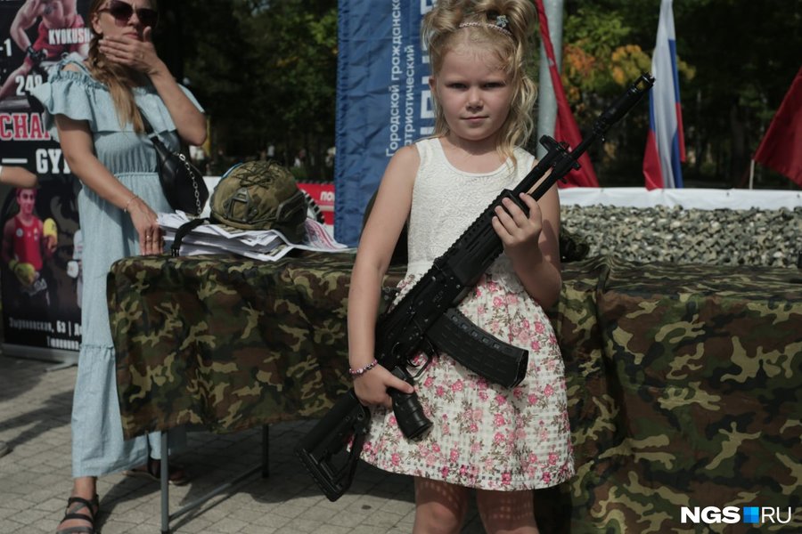Поряд з офісом, до якого найманці ПВК "Вагнер" приносять квіти, організували патріотичний фестиваль. Діти фотографувалися з автоматами та чоловіками у камуфляжі, які в один день втратили двох своїх керівників.