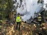 За словами начальника обласної поліції Андрія Нєбитова, у Київській області пошкоджено вісім будівель, троє людей постраждали. А на місцевому кладовищі гасили пожежу.