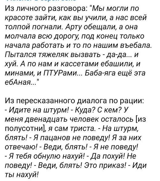 ВажливоТакож оприлюднили фрагмент перемовин з представником командування. Російський офіцер наказував штурмувати підрозділу, в якому живими залишилось 12 осіб з 50, а командир був пораненим. При цьому погрожував "обнулити", якщо не виконають наказу.