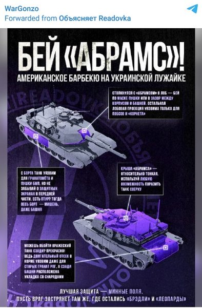 Автори матеріалу зазначили, що щойно стало відомо про рішення Білого дому надати Україні деяку кількість основних бойових танків M1 Abrams, у Росії заявили, що з ними чинитимуть так само, як і з іншими зразками західного озброєння на українських фронтах.
