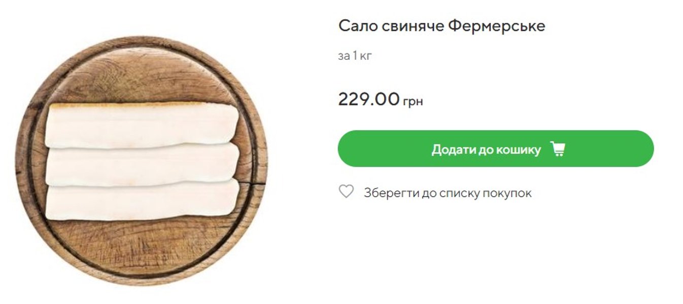 Сало: планують витратити 5132 грн по 270 грн/кг. У мережі можна знайти аналогічний товар за 230 грн.