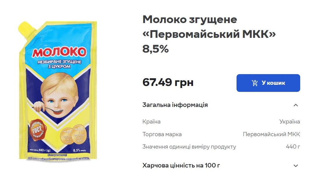 Згущене молоко: планують витратити 4500 грн, за банку 440 гр — 60 грн. Ціна у мережі — 67 грн.