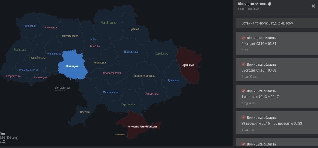 Сигнал повітряної тривоги поступово поширювався: з Херсонщини (23:56) хвилі тривог пішли на Одещину (00:56), з Запорізької області — на Дніпропетровщину, Кіровоградщину, Черкащину. Тоді ж дрони дістались до Полтавщини (01:46) і полетіли у напрямку Чернігівської області. Близько 02:00 попередили про загрозу Хмельницькій області і в Старокостянтинівському районі, також під загрозою опинилась і Чернівецька область (01:56). О 3:00 пролунали сигнали тривоги в Житомирській та Вінницькій областях.