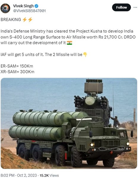 Таким чином, попри всі труднощі, з якими зіткнувся російський ВПК, Москва намагається виконувати всі обов'язки за контрактами перед індійськими покупцями, паралельно розвиваючи ключові підприємства з виробництва зенітно-ракетних комплексів.