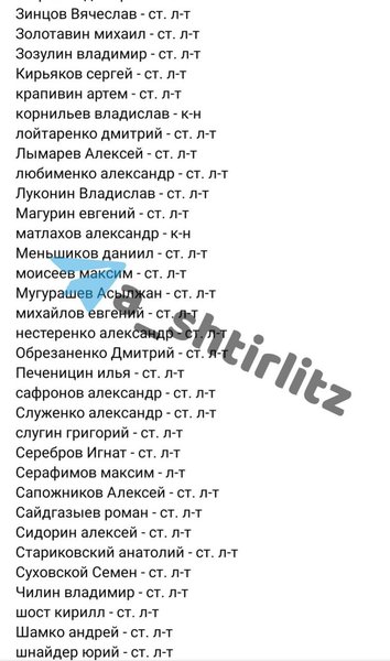 Офіцери ВДВ РФ — лейтенанти та старші лейтенанти — перелічені у списках поіменно: