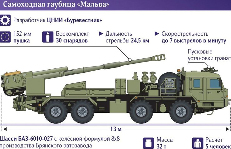 "Завдяки колісному шасі "Мальва" здатна швидко розвертатися на позиції та залишати її, уникаючи вогню у відповідь, що дуже важливо в умовах контрбатарейної війни", — ідеться в повідомленні.