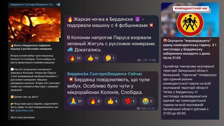 Так, 23 жовтня 2023 року в тимчасово окупованому Бердянську Запорізької області вибухнув автомобіль, у якому перебували четверо представників ФСБ РФ.