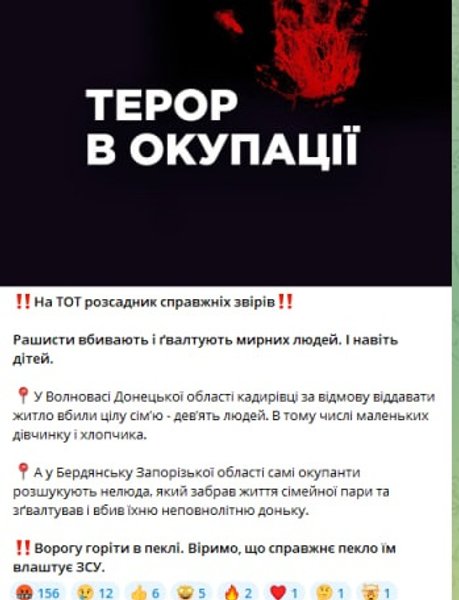 Нагадаємо, що у Волновасі окупанти намагаються приховати злочин, який скоїв військовослужбовець ЗС РФ. Він розстріляв 9 членів родини, серед них двоє маленьких дітей. Всі жертви були вбиті пострілом в голову.