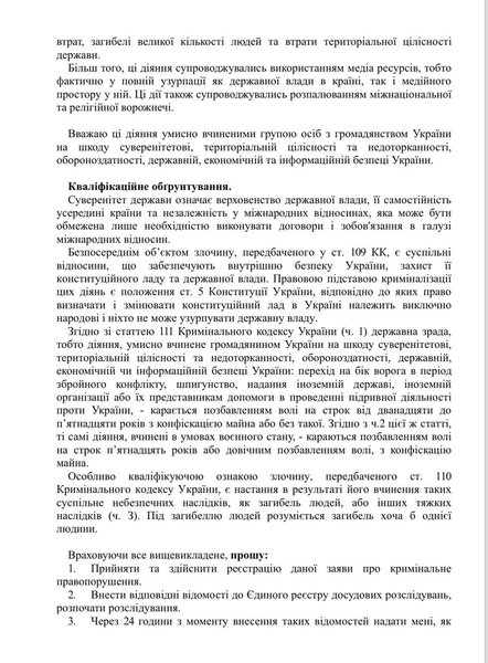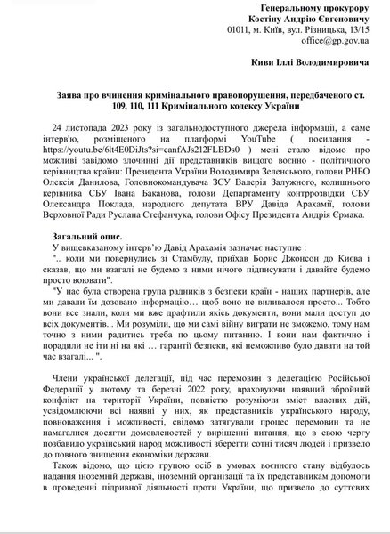 У своєму зверненні до Костіна ексдепутат просить правоохоронців порушити відповідну справу. Документ підписаний від 27 листопада.
