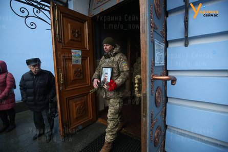 Побратими, присутні під час відспівування, принесли із собою букети квітів у жовто-блакитних кольорах. Один з побратимів ніс портрет полеглого.