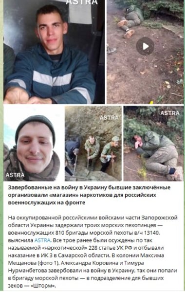 Встановлено, що наркобізнес на передовій відкрили троє військовослужбовців 810 бригади морської піхоти в/ч 13140,які раніше були засуджені за так званою "наркотичною" 228 статтею КК РФ і відбували покарання в ІЧ 3 в Самарській області. У колонії їх завербували на війну проти України, і вони потрапили до бригади морської піхоти — до підрозділу для колишніх зеків — "Шторм".