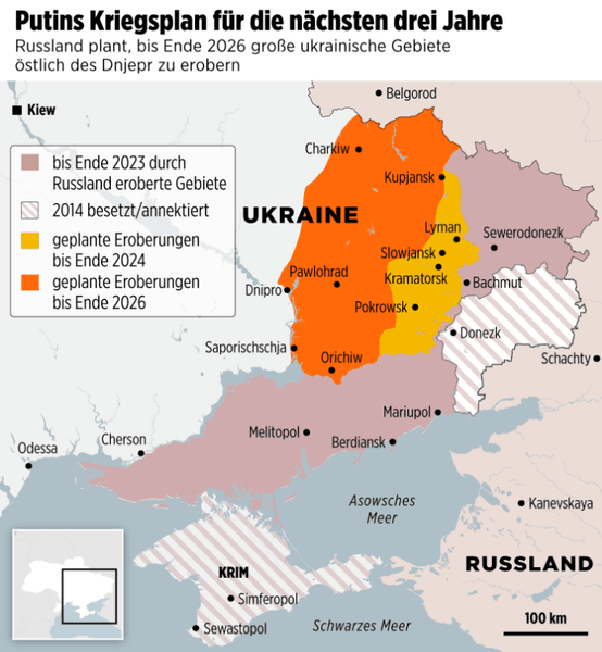 Німецьке видання Bild 14 грудня повідомило, що президент Росії Володимир Путін має план захопити ще більше територій України та провести фальшиві перемовини. Москва працює над реалізацією нового середньострокового військового плану, який стосується війни в Україні. Він передбачає захоплення нових територій. Як зазначалося, до кінця 2024 року окупанти мають намір захопити повністю Донецьку та Луганську область та просунутись до річки Оскіл на Харківщині, а у 2025-2026 роках — окупувати "значні частини" Запорізької, Дніпровської та Харківської областей.