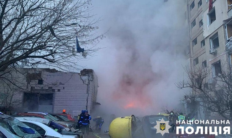 У поліції Києва повідомили, що серед постраждалих внаслідок масованої атаки є діти. Також наслідки ворожого удару опублікував голова Дарницької військової адміністрації Києва Микола Калашник.