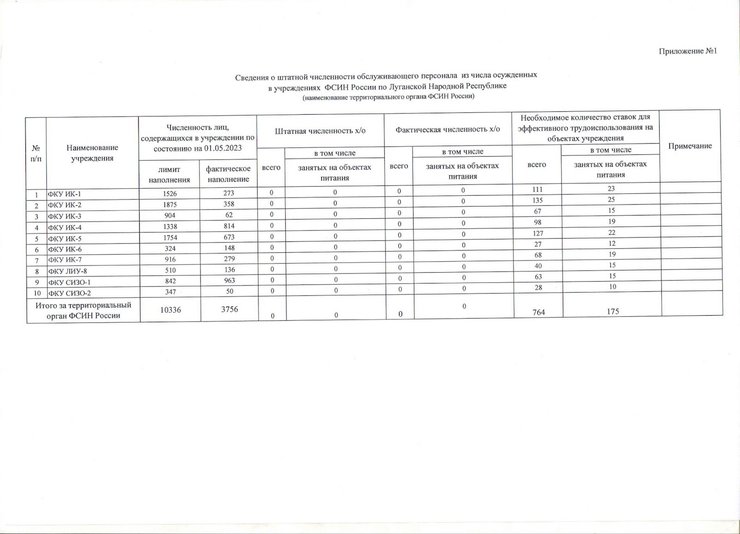 Згідно із документом, який отримали активісти "Кібер Спротиву", загальне наповнення колоній та ізоляторів тимчасово окупованих територій Луганщини станом на травень 2023-го складає 3756 осіб.