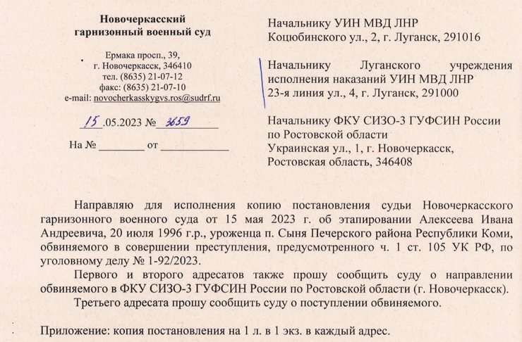 Також вони виявили, що Новочеркаський гарнізонний військовий суд регулярно використовується для перебування російських військових злочинців, які вчиняли злочини проти місцевого населення Луганщини.