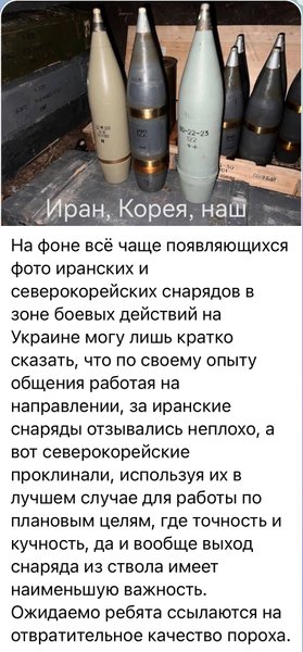 За інформацією провоєнних Telegram-каналів, бійці ЗС РФ скаржаться на "недольоти" й "перельоти" північнокорейських боєприпасів і говорять про низьку якість пороху.