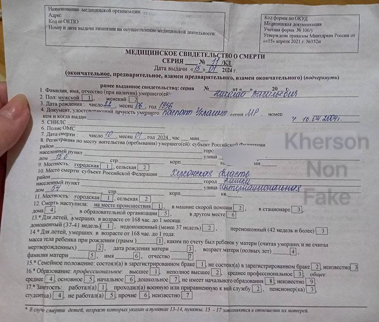 Убивство сталося ще 10 січня, але про нього стало відомо лише зараз. За свідченнями очевидців, група нетверезих озброєних окупантів розгулювала в Олешках і зганяла свою злість лайкою на мирних жителів. Так вони дійшли до вулиці Інтернаціональна.