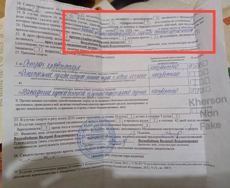 "За процесуального керівництва Херсонської обласної прокуратури розпочато досудове розслідування за фактом порушення законів і звичаїв війни, поєднаного з умисним вбивством (ч. 2 ст. 438 КК України). Унаслідок хаотичного ведення вогню було вбито місцевого мешканця. Зараз правоохоронці зʼясовують усі обставини", — повідомляє пресслужба прокуратури.