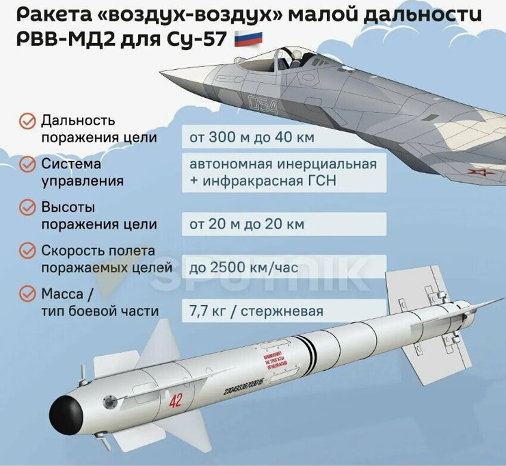 "Так, РВВ-МД2 може уражати цілі під будь-яким кутом — попереду, збоку і позаду Су-57, здійснюючи повний розворот на 180 градусів, що робить її першою ракетою такого типу", — зазначають експерти.
