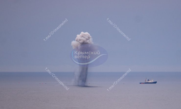 О 9:22 паблік "Крымский ветер" опублікував фото з вибухом у Чорному морі. Автори стверджують, що поблизу ВДК "Цезарь Куников" також перебувають рятувальні човни.