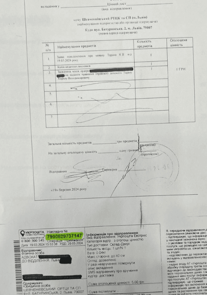 У дописі на підтвердження своїх слів Таран прикріпив скани відповідних документів.