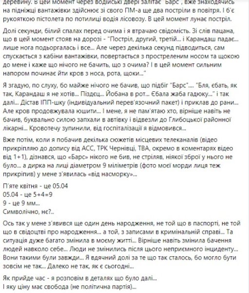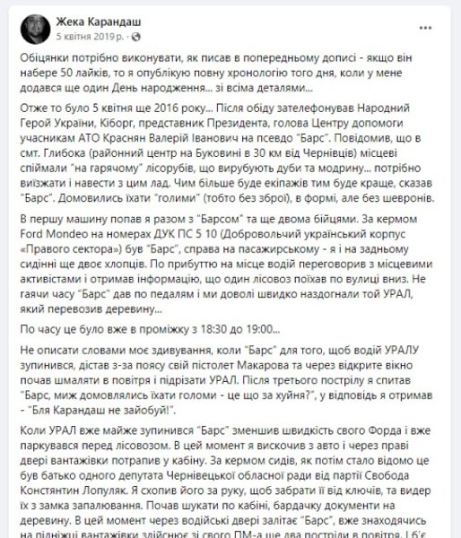 У квітні 2019 року, після декількох років мовчання, на своїй сторінці у Facebook учасник подій Євген Марусик на псевдо "Карандаш" розказав про "повну хронологію того дня".