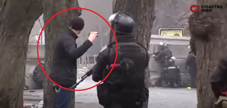 "Це — Ілля Вітюк, на той час оперативний співробітник СБУ. Відео, яке він знімав з боку спецпідрозділу "Беркут", він нам не надав. Сказав, що в нього вкрали в спортзалі телефон, а відео з Інститутської він видалив ще до цього. Нікого з тих, хто стріляв, — він теж не впізнав", — каже Сергій Горбатюк.
