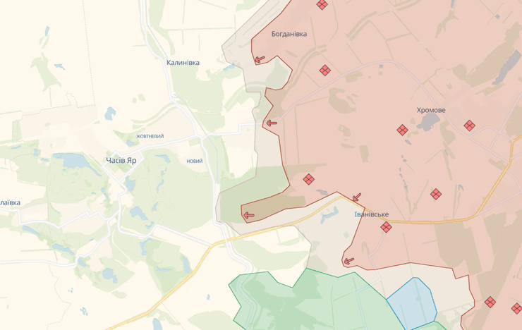 Зафіксовано просування й південніше Новобахмутівки, в Красногорівці та Новокалиновому. Бої з окупантами тривають в населених пунктах Урожайне, Кислівка, біля Вербового та Новомихайлівки.