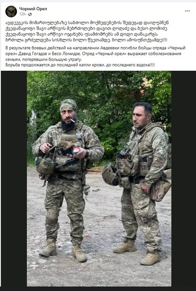 Там зазначили, що на війні загинули двоє їхніх бійців — Давид Гогадзе та Бесо Ломідзе.