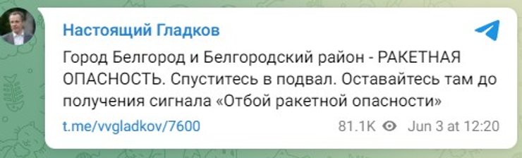 На території Бєлгородської області 3 червня прогриміли вибухи. За інформацією ведучих Telegram-каналу "Досьє Шпигуна", українські сили за допомогою реактивних систем залпового вогню HIMARS завдали удару по російських ЗРК С-300 і С-400.