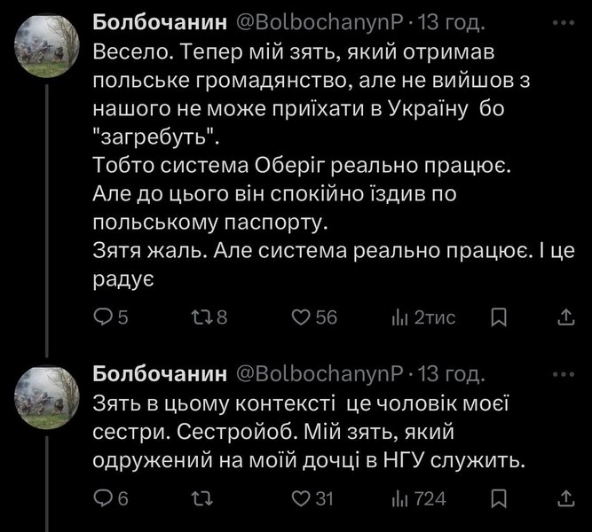 Як приклад, він навів свого зятя, який мешкає в Польщі й отримав там громадянство, але має також і українське громадянство, тож боїться приїздити до України, бо тут його "загребуть до ЗСУ".