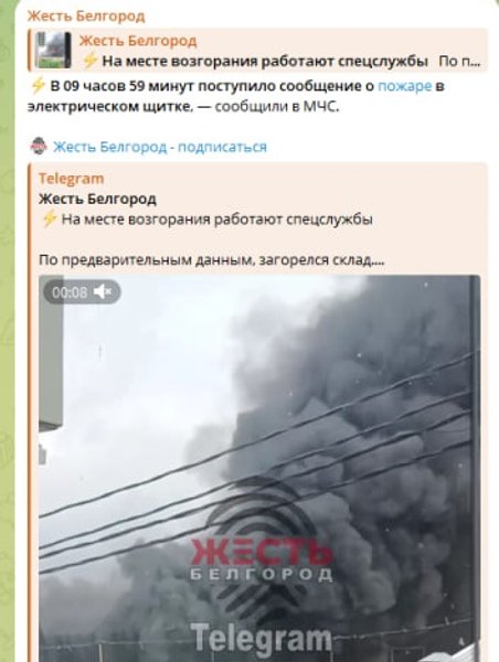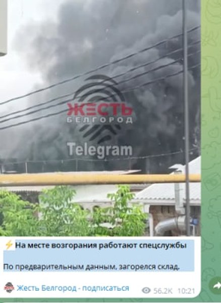 В місті Бєлгород в Росії 17 червня зранку виникла пожежа на місцевому складі. Про це повідомляють в телеграм-каналі "Жесть Белгород".