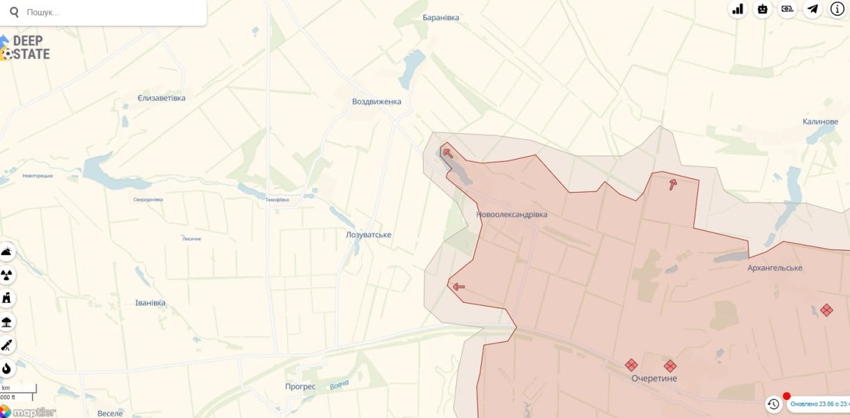 23 червня аналітики DeepState повідомили, що російські окупаційні війська захопили Новоолександрівку, а до траси Покровськ — Костянтинівка залишився один населений пункт. Окупанти намагаються закріпитися на західних околицях села. Сили Оборони України проводять ураження живої сили, щоб зупинити подальше просування.