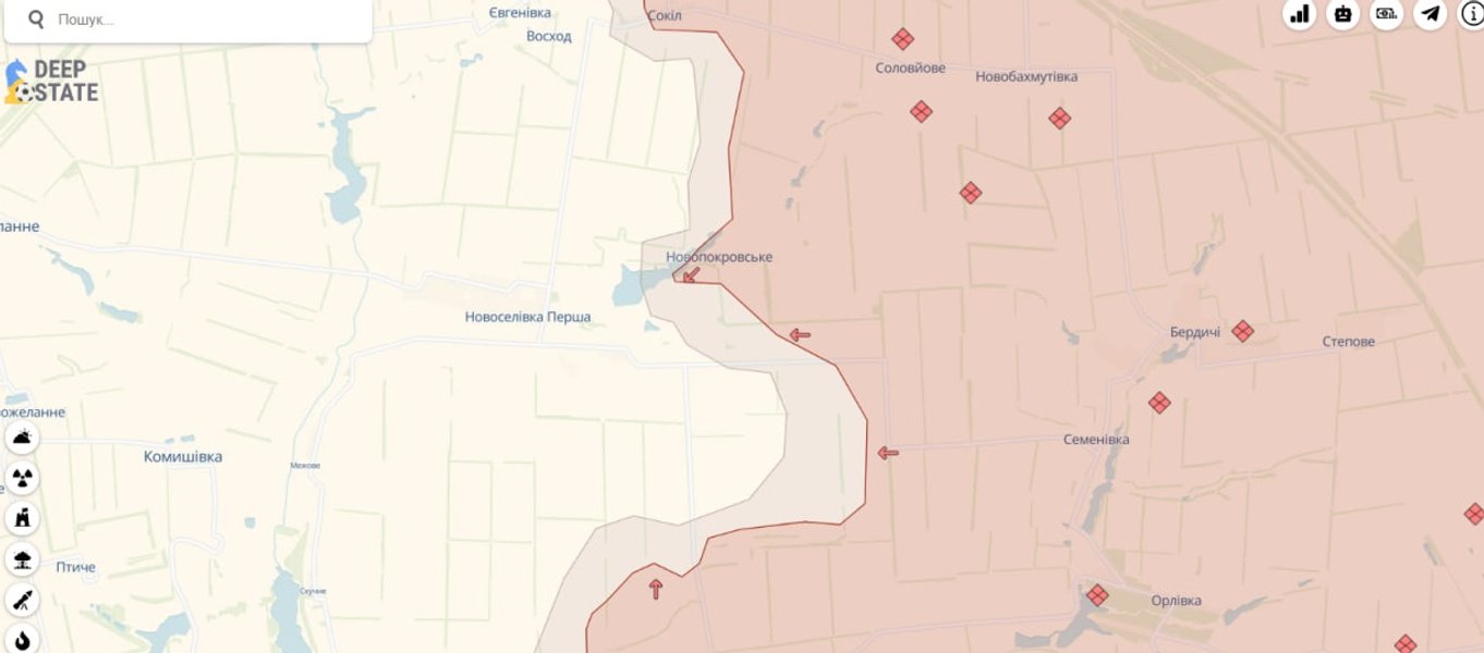 "Ворог просунувся у Новоолександрівці, Соколі, біля Новопокровського та Володимирівки", — йдеться в повідомленні.