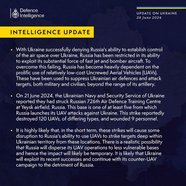 "Цілком ймовірно, що в короткостроковій перспективі ці удари призведуть до певних перебоїв у здатності Росії використовувати БпЛА для завдання ударів по цілях у глибині території України з цих місць. Існує реалістична ймовірність того, що Росія розподілить свої операції з БпЛА на менш вразливі бази", — йдеться в повідомленні.
