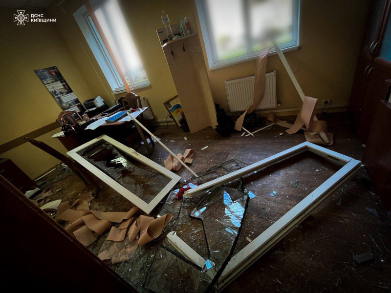 Там вибито вікна, двері, пошкоджено стіни. Окремо в Київській ОВА додали, що ворожий обстріл пошкодив складське приміщення, адміністративні будівлі, а також 16 транспортних засобів. На місці продовжують працювати оперативні служби.