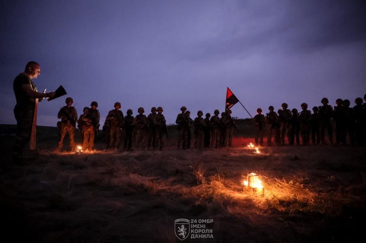Новобранці бригади напередодні прийняли Військову присягу на вірність українському народові та виголосили молитву українського націоналіста.