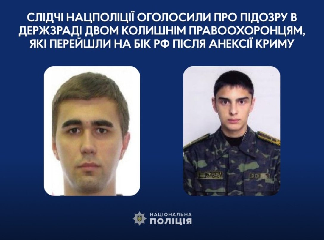 Слідчі Національної поліції оголосили про підозру в державній зраді двом колишнім правоохоронцям, які після анексії Криму перейшли на бік росіян. У окупантів вони отримали посади і виконували злочинні злочини. Зокрема, переслідували кримських татар, повідомляє Національна поліція України.