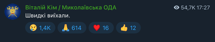 О 17:27 голова Миколаївської ОВА Віталій Кім заявив, що на місце виїхали швидкі.