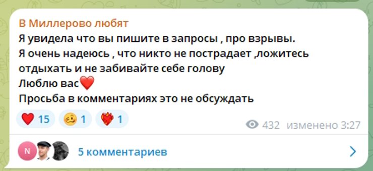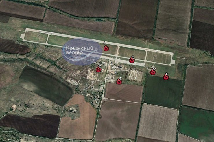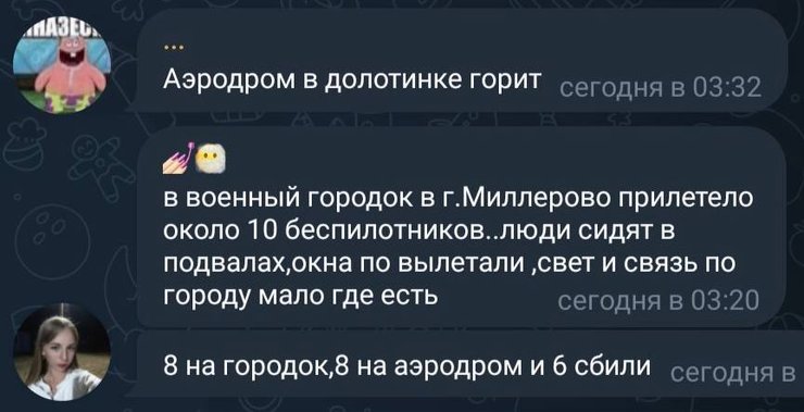 Водночас місцеві жителі повідомляли про БПЛА і що пролунало понад 16 вибухів у районі аеродрому, поблизу поселення Долотинка та в районі нафтобази.