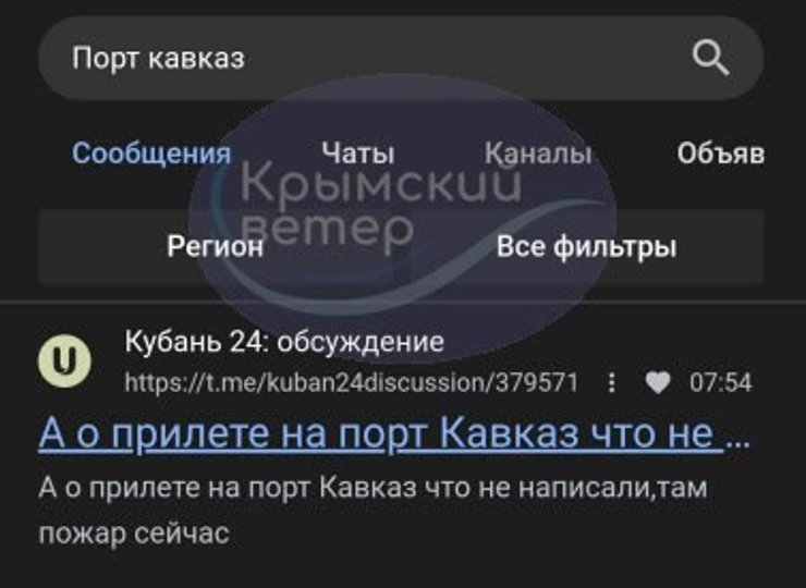 Моніторинговий паблік "Кримський вітер" також звернув увагу на те, що у російських соцмережах видаляють повідомлення про приліт у порт "Кавказ".