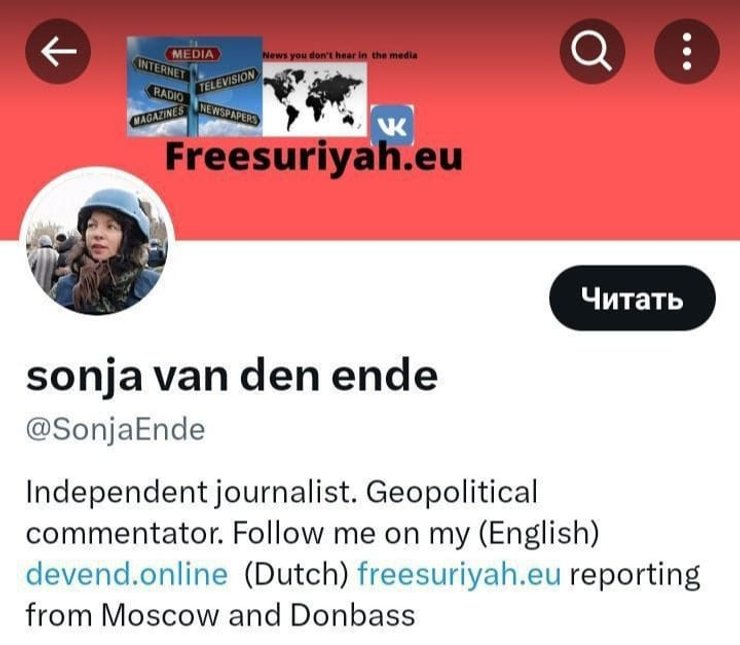 Соня ван ден Енде — нідерландська журналістка, яка з 2015 року активно поширює наративи, співзвучні з російськими. Як повідомляли в Центрі протидії дезінформації при РНБО України, кар’єру пропагандистки вона розпочала у 2015 році, коли повідомила, що пожежу в Одесі спричинили "українські фашисти".