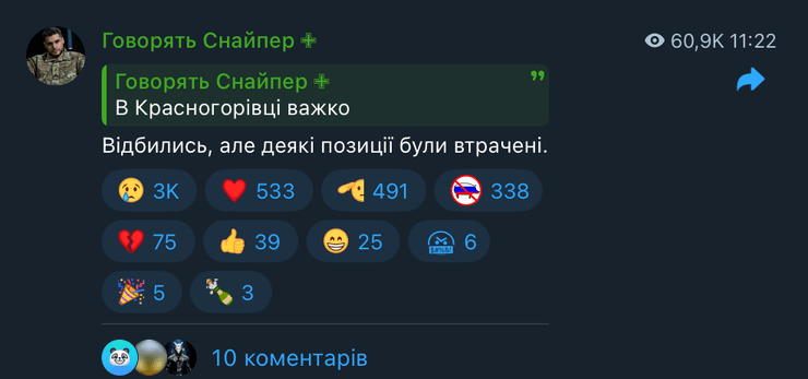 Вранці 28 липня він повідомив, що українцям вдалося відбити штурм ЗС РФ, проте деякі позиції були втрачені.