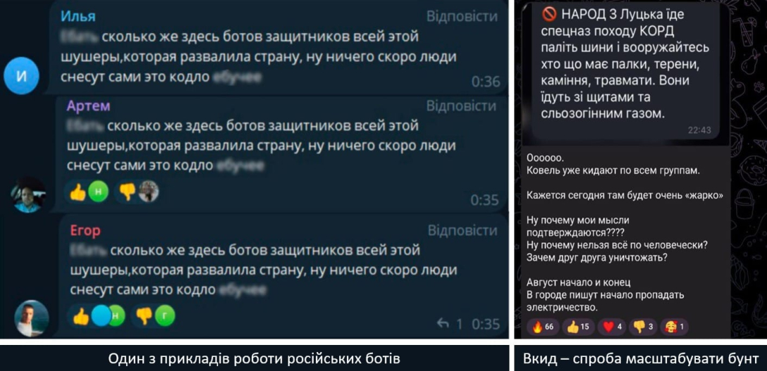 Заява була проілюстрована скріншотами з соцмереж, які подали як приклад роботи російських ботів.