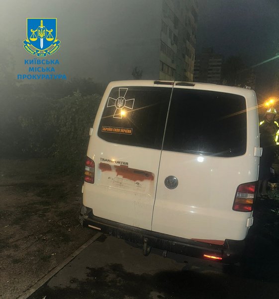 У прокуратурі Києва уточнюють, що фігурант знищив автомобіль "Volkswagen Transporter" зі знаками належності до Збройних Сил України у вигляді хреста з гербом України та написом "Збройні Сили України".