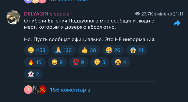 Зауважимо, що остання публікація в Telegram-каналі Піддубного зʼявилася о 19:37 (за київським часом). Сьогодні він перебував в прикордонному районі Курської області.