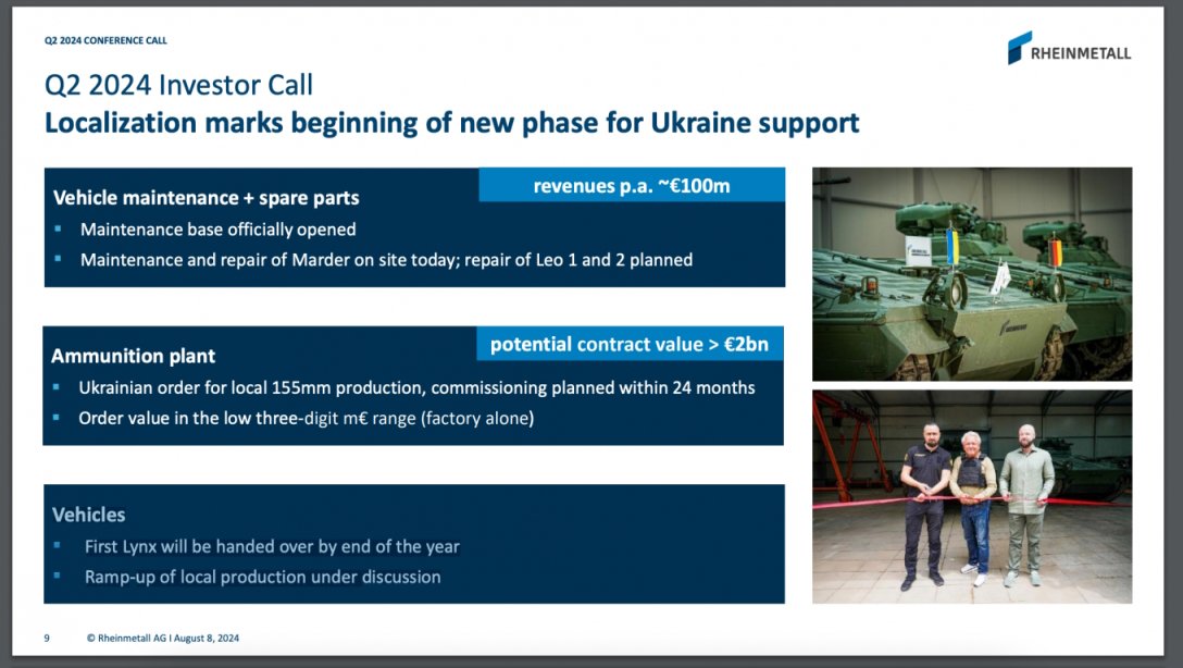 Також Фокус писав, що наприкінці липня Rheinmetall отримав своє перше замовлення від українського уряду на будівництво заводу з виробництва боєприпасів. Снаряди на ньому планують випускати вже через два роки.