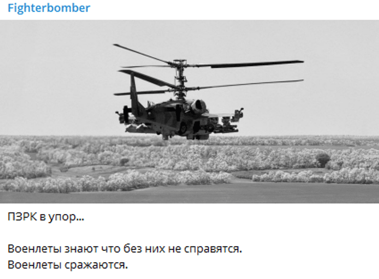 У суботу, 10 серпня, в Курській області РФ було знищено вертоліт ВКС Росії Ка-52. Про це повідомив автор каналу "Fighterbomber" капітан ЗС РФ Ілля Туманов.