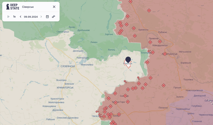 Сили оборони нещодавно відновили позиції, а російські війська незначно просунулися в напрямку Сіверська на тлі операцій 9 вересня. Геолокаційні кадри, опубліковані 8 вересня, вказують на те, що ЗСУ нещодавно відвоювали позиції в східній частині Івано-Дар'ївки. Про це пише "Інститут вивчення війни" у зведенні від 9 вересня.